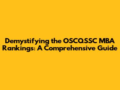 Demystifying The OSCQSSC MBA Rankings: A Comprehensive Guide