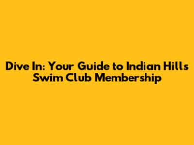 Dive In: Your Guide To Indian Hills Swim Club Membership