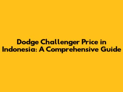 Dodge Challenger Price In Indonesia: A Comprehensive Guide