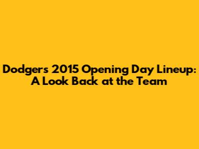 Hey baseball fanatics! Let's rewind the clock and take a deep dive into the Los Angeles Dodgers' 2015 opening day lineup. Remember the excitement? The buzz in the air? It's like, a whole lifetime ago! As we venture down memory lane, we'll unearth the players who took the field that day, analyze their roles, and revisit some of the pivotal moments that defined the game. We'll also, like, reflect on how this particular lineup fit into the Dodgers' overall strategy for the 2015 season and assess its impact on the team's performance. So, buckle up, grab your peanuts and Cracker Jacks, and let's get this show on the road! This article isn't just about listing names; it's about reliving the experience and understanding the context that made this day so memorable for Dodgers fans.