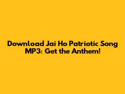 Download Jai Ho Patriotic Song MP3: Get The Anthem!