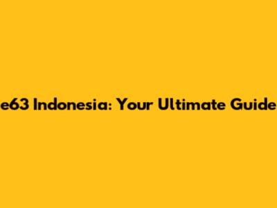 E63 Indonesia: Your Ultimate Guide