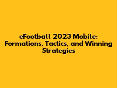 Hey guys! Ready to dive deep into the world of eFootball 2023 Mobile and dominate the pitch? Let's talk about the secret sauce – formations and tactics! Choosing the right formation is absolutely crucial for success, whether you're a seasoned veteran or just starting out. It dictates how your team will line up, how they'll attack, and how they'll defend. Understanding the strengths and weaknesses of different formations allows you to tailor your game plan to your players' abilities and your opponent's style. We're going to break down the most popular and effective formations in eFootball 2023 Mobile, explore their tactical nuances, and give you some tips on how to perfect your game.