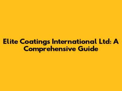 Hey everyone! Today, we're diving deep into Elite Coatings International Ltd – a name you might have come across if you're into the world of protective coatings, industrial solutions, or even just keeping your stuff in tip-top shape. This guide is crafted to give you the lowdown on what they do, the kind of services they offer, and why they might just be the go-to solution for your needs. So, grab a coffee, sit back, and let's get started!