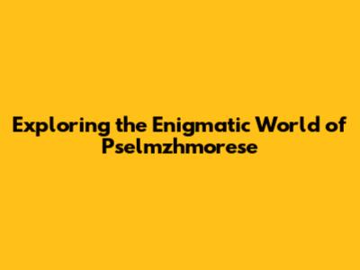 Exploring The Enigmatic World Of Pselmzhmorese