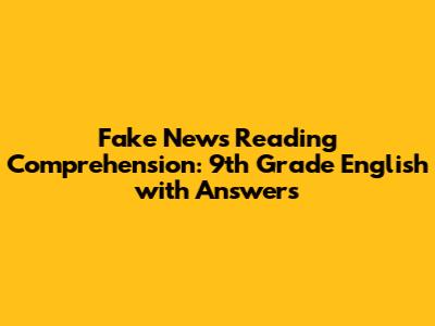 Fake News Reading Comprehension: 9th Grade English With Answers