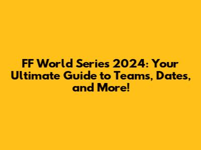 FF World Series 2024: Teams, Dates, And Everything You Need To Know!