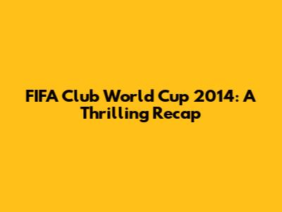 Hey guys! Let's dive into a thrilling recap of the FIFA Club World Cup 2014. This tournament brought together some of the best club teams from around the globe, all vying for the coveted title of world champion. From nail-biting matches to stunning goals, the 2014 edition had it all. So, buckle up as we journey back and relive those unforgettable moments!