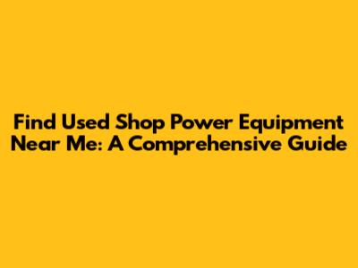Find Used Shop Power Equipment Near You: A Comprehensive Guide