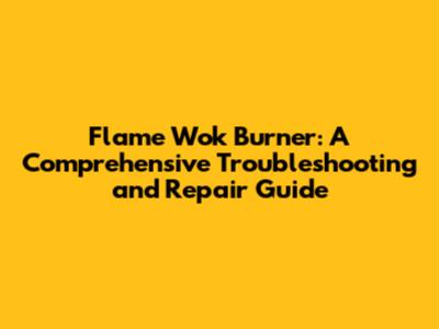 Flame Wok Burner Troubleshooting & Repair Guide