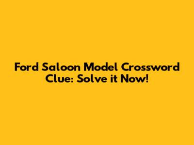 Ford Saloon Model Crossword Clue: Solve It Now!