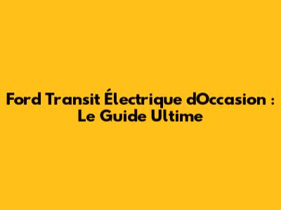 Ford Transit Électrique D'Occasion : Le Guide Ultime
