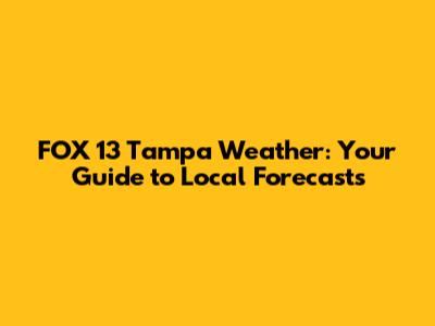 Hey guys! If you're in the Tampa Bay area and trying to figure out what's happening with the weather, you've come to the right place. We're diving deep into everything you need to know about FOX 13 Tampa weather. Whether you're planning your commute, a day at the beach, or just want to know if you need an umbrella, staying updated on local weather is super important. FOX 13 News provides some of the most reliable and up-to-date weather information for Tampa and its surrounding communities. They've got meteorologists who are dedicated to giving you the most accurate forecasts, helping you prepare for whatever Mother Nature throws our way. Let's break down why tuning into FOX 13 for your weather needs is a smart move and what kind of insights you can expect.