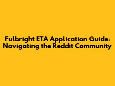 • r/Fulbright: This is the main subreddit dedicated to the Fulbright program. You'll find a wide range of discussions about all aspects of the program, including ETA applications.