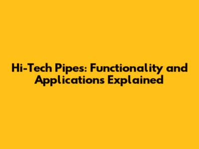 Hi-Tech Pipes: Functionality And Applications Explained