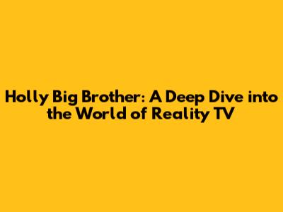 Holly Big Brother: A Deep Dive Into The World Of Reality TV