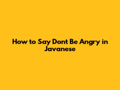 How To Say Don't Be Angry In Javanese