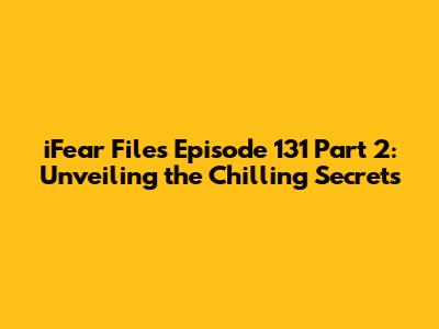 Hey guys, buckle up because we're diving deep into the iFear Files Episode 131 Part 2, and let me tell you, it's a wild ride. If you thought Part 1 was intense, get ready for the chills to run down your spine! This episode continues the exploration of unsettling mysteries and unexplained phenomena, offering a blend of suspense, horror, and the downright bizarre. Let's break down what makes this episode a must-listen for any true crime and paranormal enthusiast.