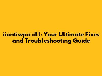 What Exactly is iiantiwpa dll? Let's Break It Down