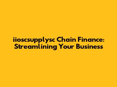 Iioscsupplysc Chain Finance: Streamlining Your Business