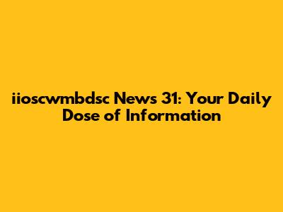 Iioscwmbdsc News 31: Latest Updates And Live Coverage