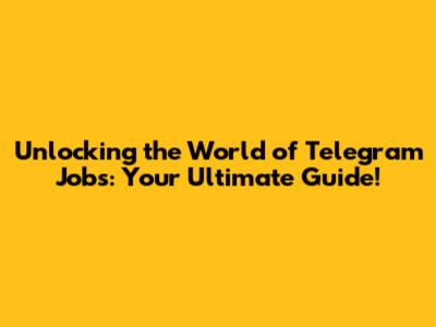 Unlocking the World of Telegram Jobs: Your Ultimate Guide!