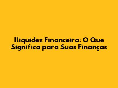 Iliquidez Financeira: O Que Significa Para Suas Finanças