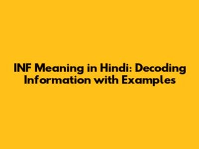 INF Meaning In Hindi: Decoding Information With Examples