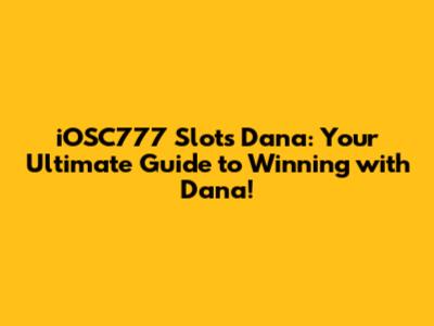 IOSC777 Slots Dana: Your Guide To Winning With Dana!