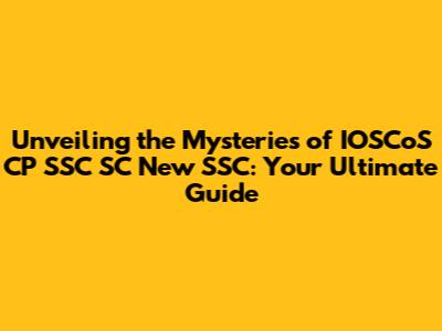 Unveiling the Mysteries of IOSCoS CP SSC SC New SSC: Your Ultimate Guide