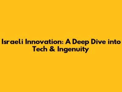 Israeli Innovation: A Deep Dive Into Tech & Ingenuity