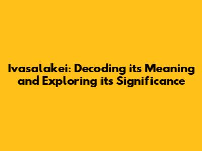 Ivasalakei: Unveiling The Meaning And Significance