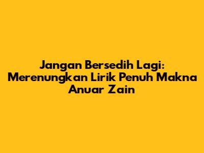 Jangan Bersedih Lagi: Memahami Lirik Penuh Makna Anuar Zain