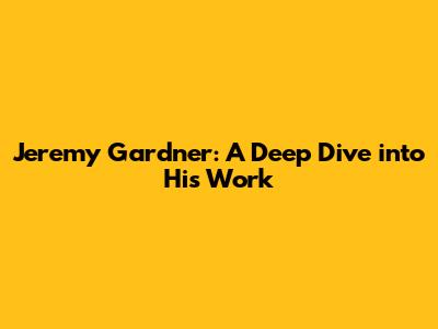 Jeremy Gardner: A Deep Dive Into His Work