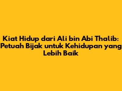 Kiat Hidup Dari Ali Bin Abi Thalib: Petuah Bijak Untuk Kehidupan Yang Lebih Baik