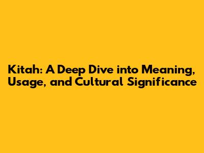 Kitah: A Deep Dive Into Meaning, Usage, And Cultural Significance