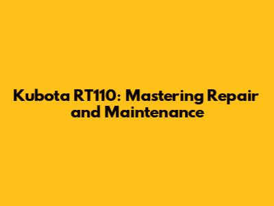 Kubota RT110: A Comprehensive Guide To Repair & Maintenance