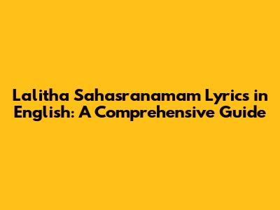 Lalitha Sahasranamam Lyrics: A Comprehensive Guide