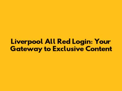 Liverpool All Red Login: Your Gateway To Exclusive Content