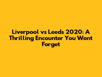 Alright guys, let's dive into one of those classic matches that had us all on the edge of our seats! We're talking about the Liverpool vs Leeds clash from 2020, a game that truly showcased the passion and skill of both teams. When these two giants of English football go head-to-head, you just know it's going to be a spectacle, and this particular encounter was no exception. Whether you're a die-hard Liverpool supporter or a proud Leeds fan, or even just a neutral observer who appreciates a good game of football, this match delivered on all fronts. We'll be breaking down the key moments, the standout performances, and what this result meant for both clubs as the season unfolded. So, grab your favorite beverage, settle in, and let's relive some of the magic from this unforgettable 2020 encounter. It was a game filled with drama, tactical battles, and moments of sheer brilliance that will live long in the memory of football fans. We'll be exploring the strategies employed by both managers, the tactical adjustments made throughout the 90 minutes, and how each team tried to gain the upper hand. The atmosphere, even if it was behind closed doors due to the prevailing circumstances, was palpable through the screen, a testament to the historical rivalry and the intensity of the fixture. This wasn't just another league game; it was a statement game for both sides, with bragging rights and crucial points on the line.