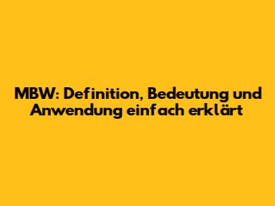 MBW: Definition, Bedeutung Und Anwendung Einfach Erklärt