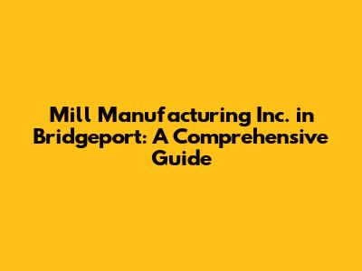 Mill Manufacturing Inc. In Bridgeport: A Comprehensive Guide