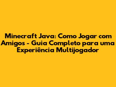 Minecraft Java: Guia Completo Para Jogar Com Amigos