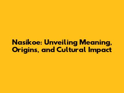Nasikoe: Unveiling Meaning, Origins, And Cultural Impact