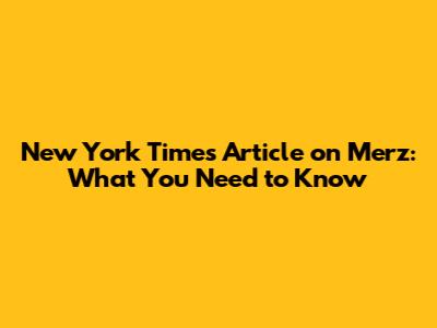 New York Times Article On Merz: What You Need To Know