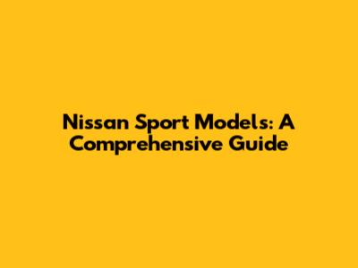 Nissan Sport Models: A Comprehensive Guide