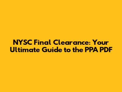 NYSC Final Clearance: Your Guide To PPA PDF