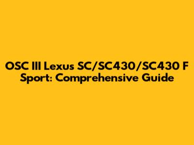 OSC III Lexus SC, SC430, And SC F Sport: Comprehensive Guide