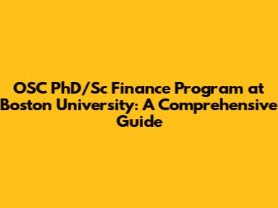 OSC PhD/Sc Finance Program At Boston University: A Comprehensive Guide