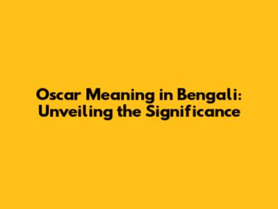 Oscar Meaning In Bengali: Unveiling The Significance
